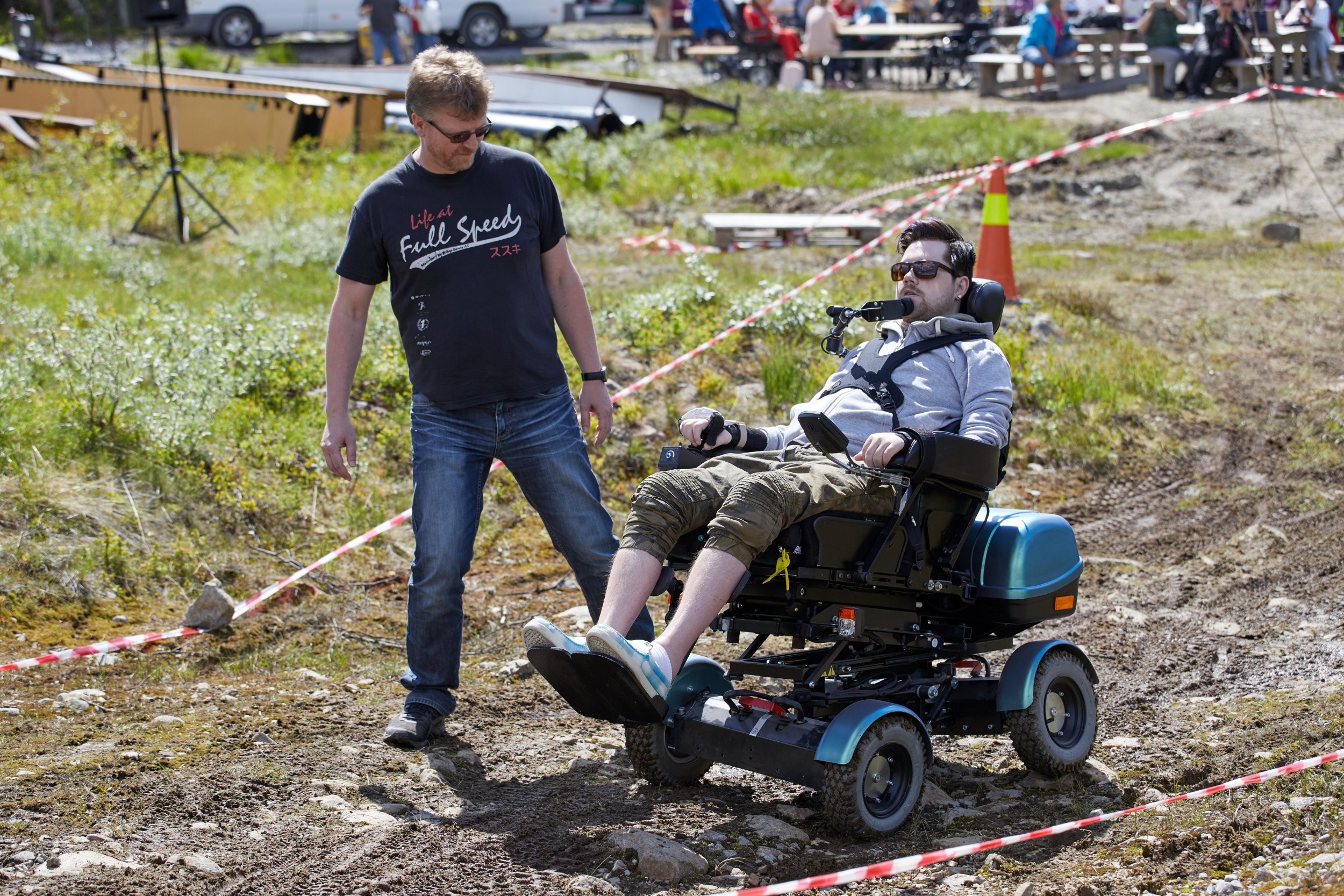 – Det vil si, det var kona mi, Linda, som kjørte. Men dette måtte vi få med oss. Saken er at jeg er omtrent den eneste rullestolbrukeren i kommunen der jeg bor. Så jeg tenkte at dette ville være en flott mulighet til å få prøvd ut noen forskjellige hjelpemidler.