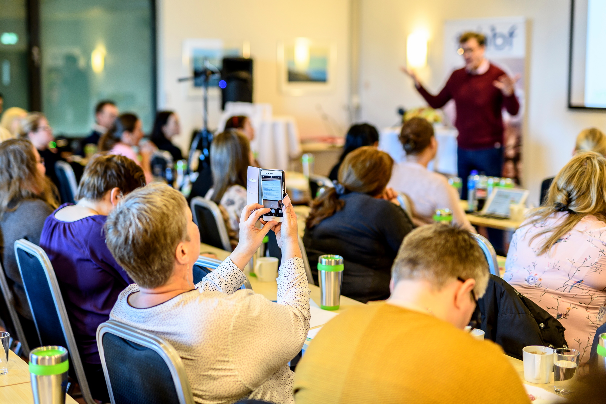 HBF-leder Elin Langdahl er svært takknemlig for at Kåre Willoch tok seg tid til å delta i jubileumsmarkeringen på Thon Hotel Oslofjord i Sandvika utenfor Oslo.
